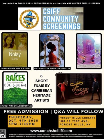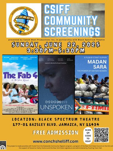 Conch Shell Productions presents community screenings in Queens, New York spotlighting bold, thought-provoking films by Caribbean heritage filmmakersm previously featured in our Conch Shell International Film Fests.